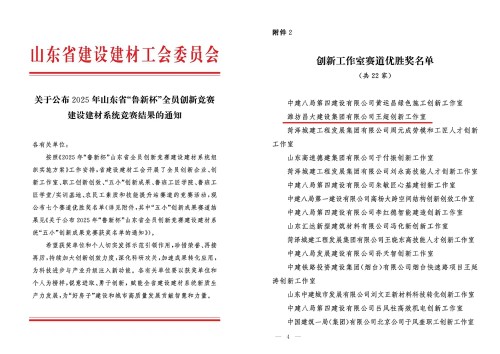集團(tuán)王超工匠創(chuàng)新工作室獲2025年山東省”魯新杯”全員創(chuàng)新競賽建設(shè)建材系統(tǒng)競賽優(yōu)勝獎(jiǎng)